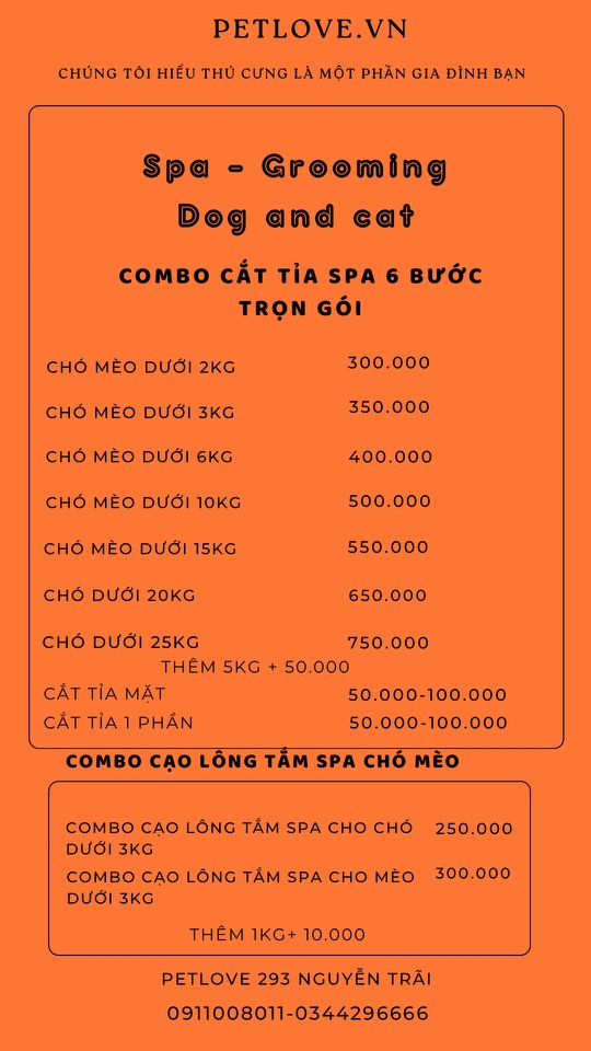 Pet Love là cửa hàng thú cưng đầu tiên có dịch vụ tắm massage và cắt tỉa lông 6 bước. Đến với chúng tôi các bé sẽ được ăn hạt cao cấp trong lúc chờ. Với cơ sở vật chất khang trang, phòng ốc sạch sẽ, nhiệt độ mát mẻ.Các bé sau khi spa xong sẽ vô cùng xinh đẹp. Luôn có được sự thoải mái, vui vẻ, và tình yêu vô hạn từ Pet Love.