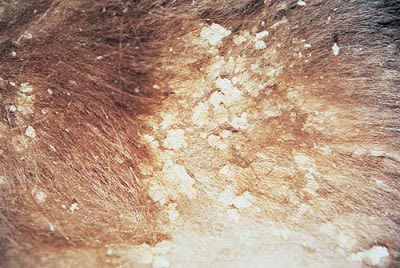 - Nấm vẩy gầu thường bị trên lưng, đầu hoặc khắp người. Có nhiều vảy gàu trắng nhỏ trên bề mặt da và lông.